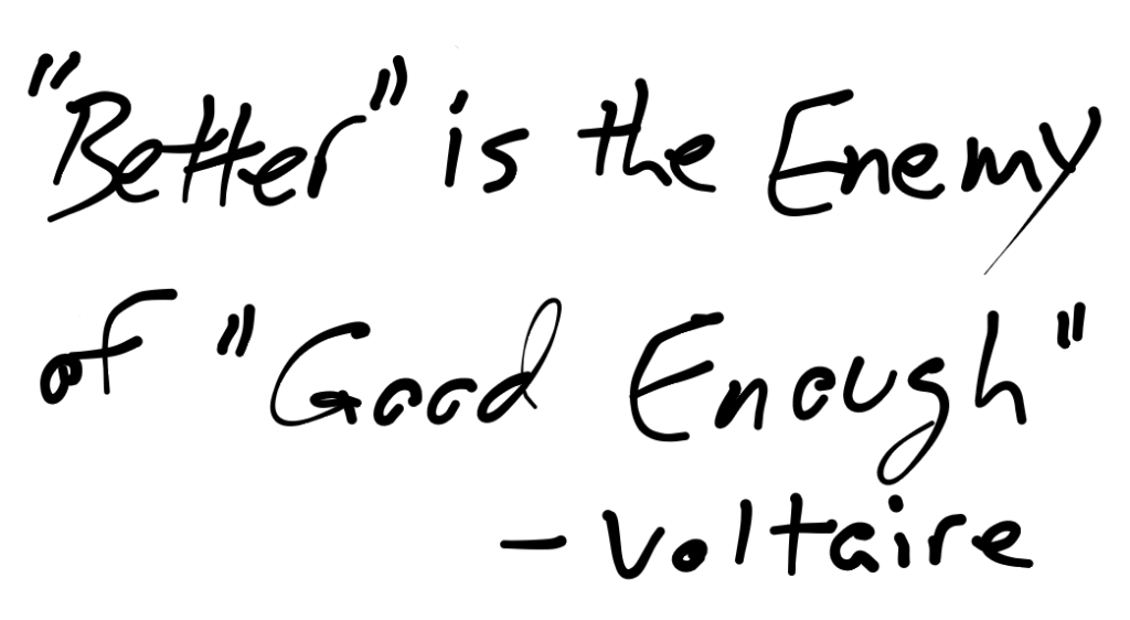 Professionally – being in Sales and Revenue, who is to say when enough is enough. When you hit last year’s numbers, when you hit budget, when you surpass your best year? In my world enough is never enough so as the leader I make sure that those that I lead know where the ceiling is in every case. We call it the “50 Things”. It is not literally 50 things but the theory is that when you know you have done all you can do (which should be enough) then “call it”. More is not always better.