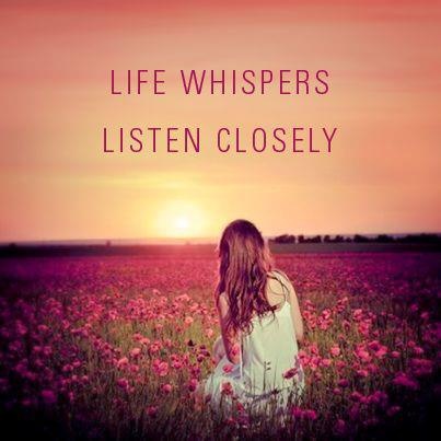 It comes back to energy; these life whispers are about being in touch with your life and the energy that is all around you. My advice to you is simple: