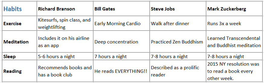 The list is not surprising, as most of us know the benefits of doing these things. These people find time for these habits despite their demanding careers and schedules. Then why can’t we?